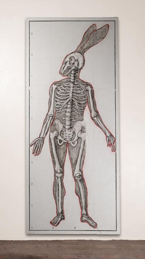 2016, Graphite, Peinture, pigments sur bois, 210 x 90 cm