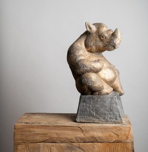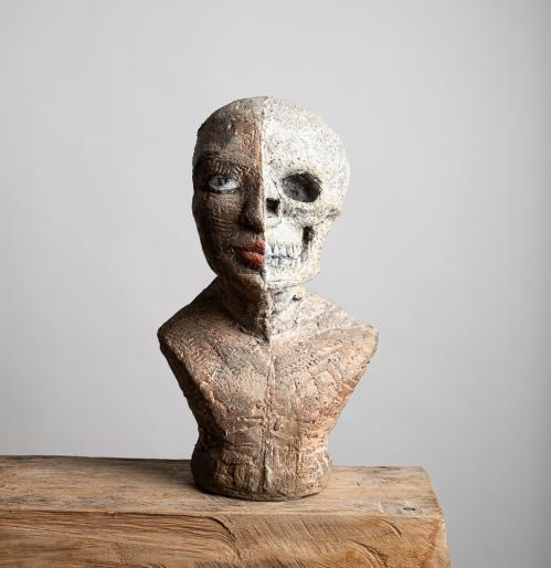 2016, ciment polychrome / bronze, 24 x 13,5 x 13,5 cm