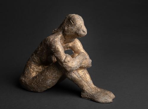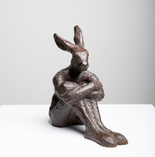Femlièvre assise, bras croisés