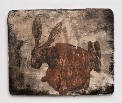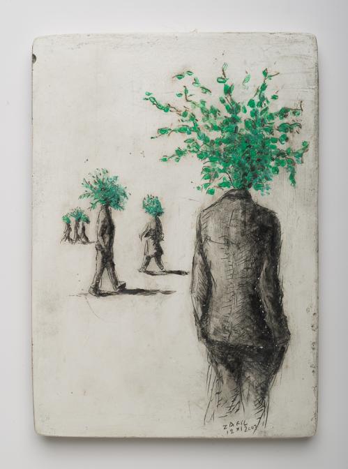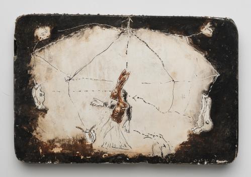 2009, Plâtre gravé, technique mixte , 15 x 11 x 1,5 cm