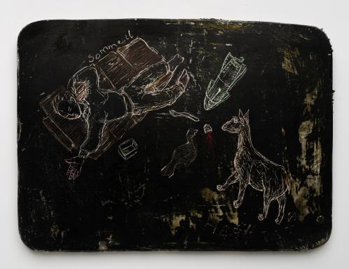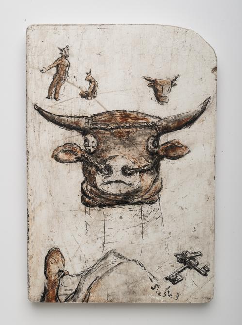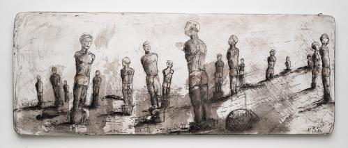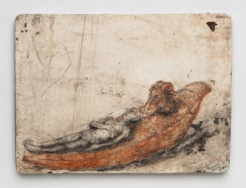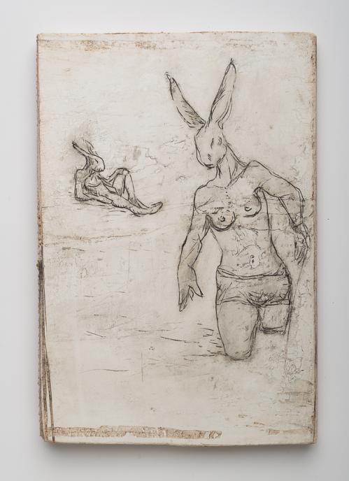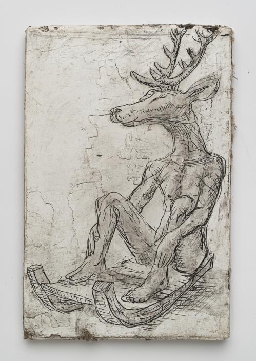 2013, Plâtre gravé, technique mixte , 35 x 23 x 1,5 cm