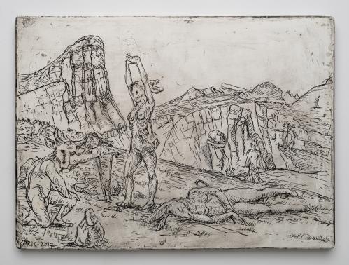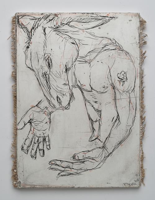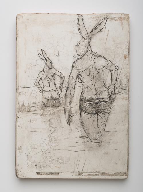 2017, Plâtre gravé, technique mixte