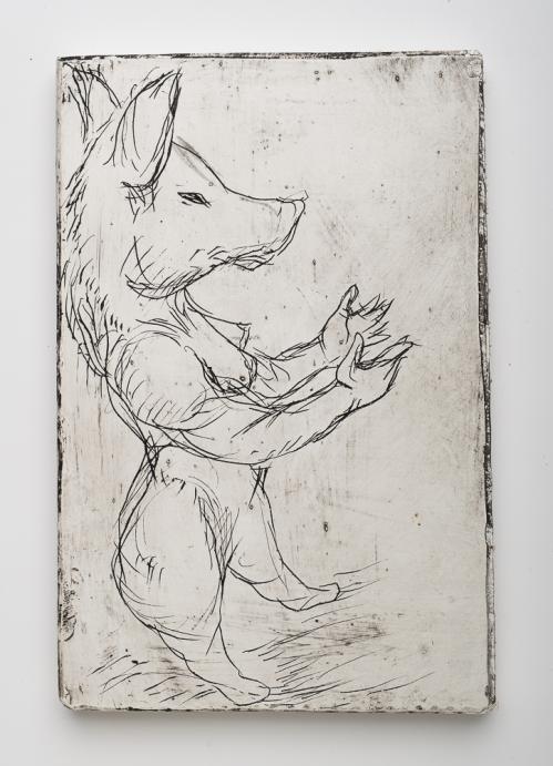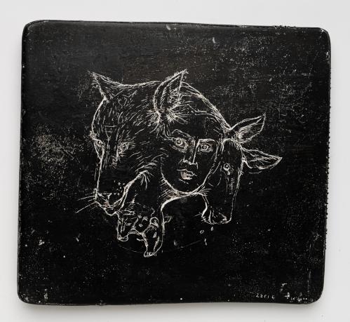2010, Sgraffito plâtre gravé , 30,5 x 22,5 x 1 cm