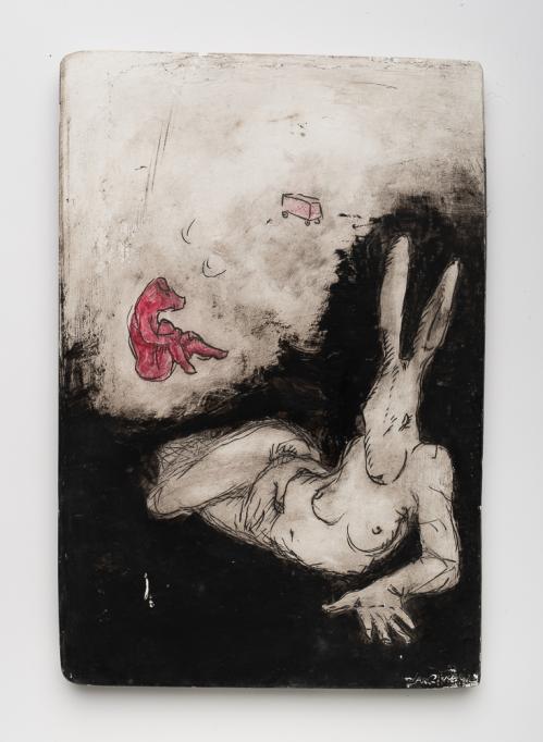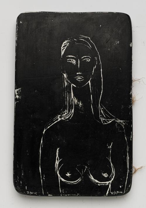 2016, plâtre gravé, technique mixte, 22 x 15,5 x 1 cm