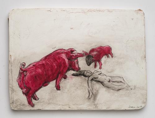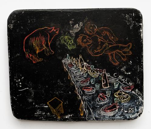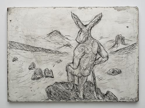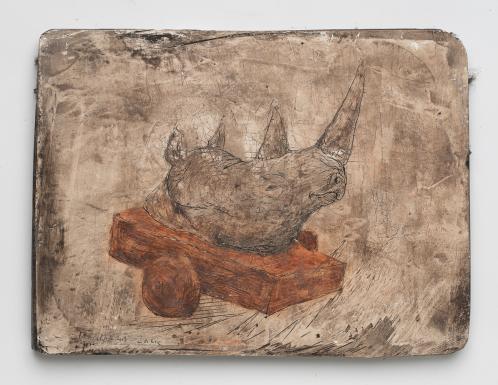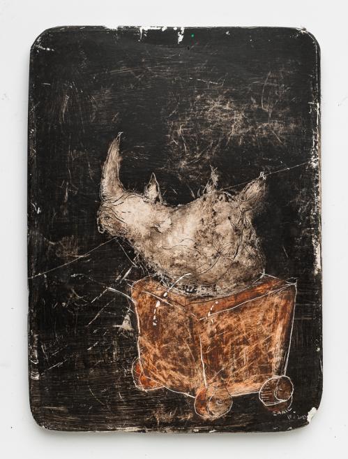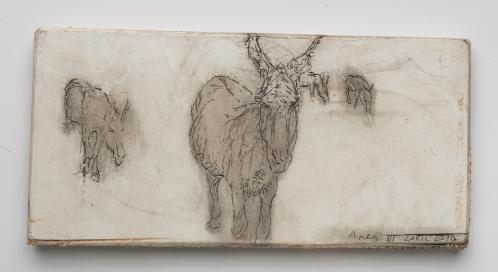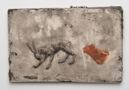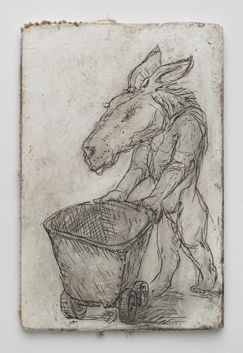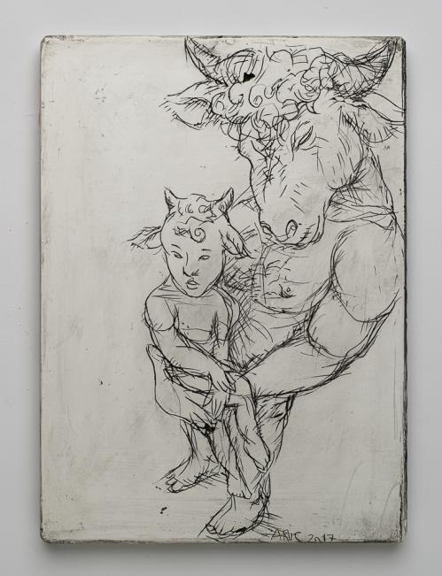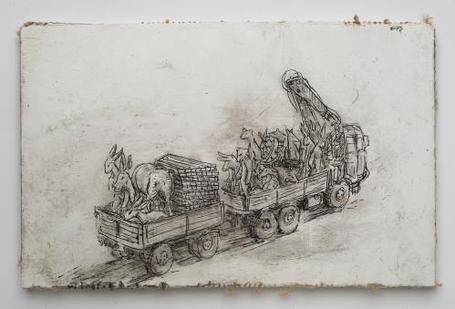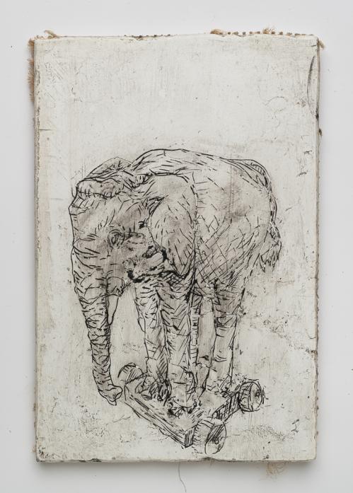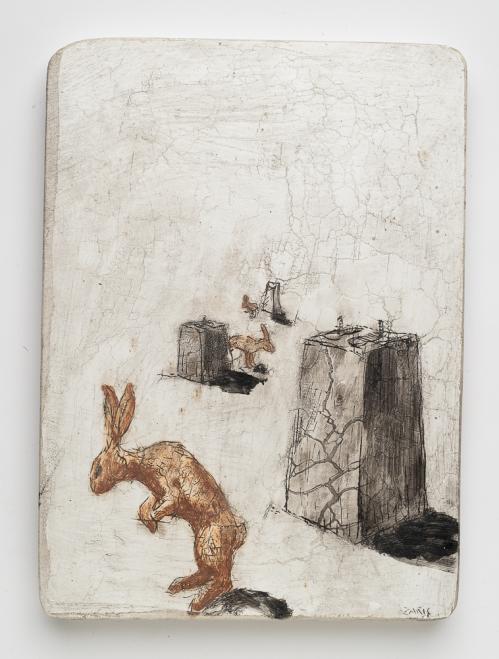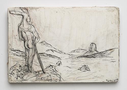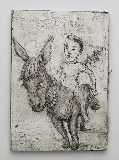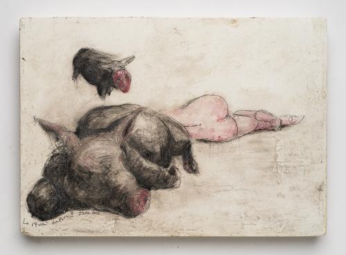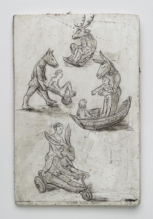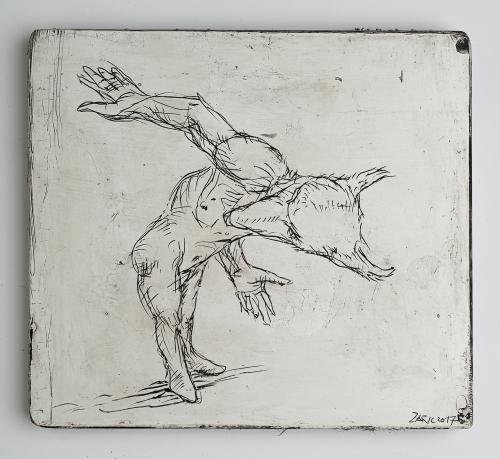 2017, Plâtre gravé, technique mixte , 21 x 30 cm