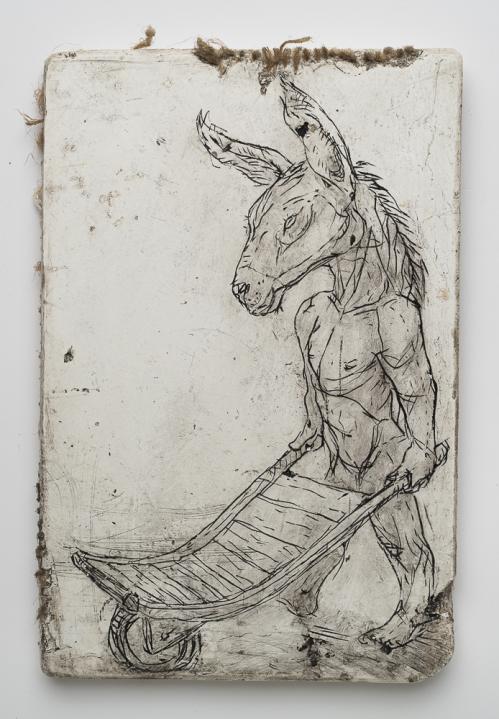 2017, Plâtre gravé, technique mixte , 30 x 21 x 1 cm