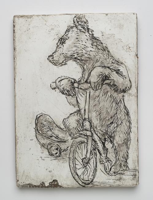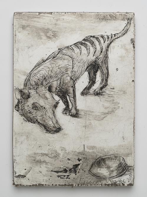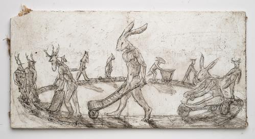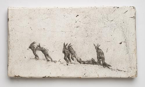 2017, Plâtre gravé, technique mixte , 19,5 x 30,5 x 1 cm