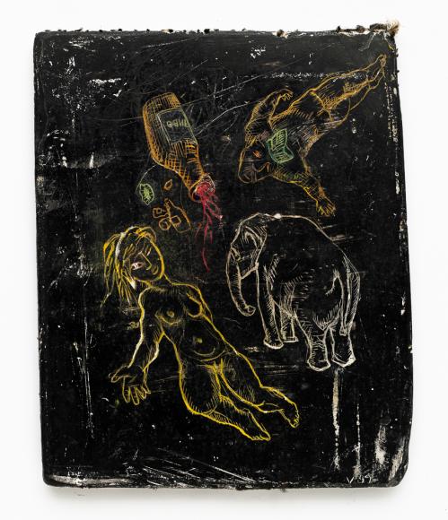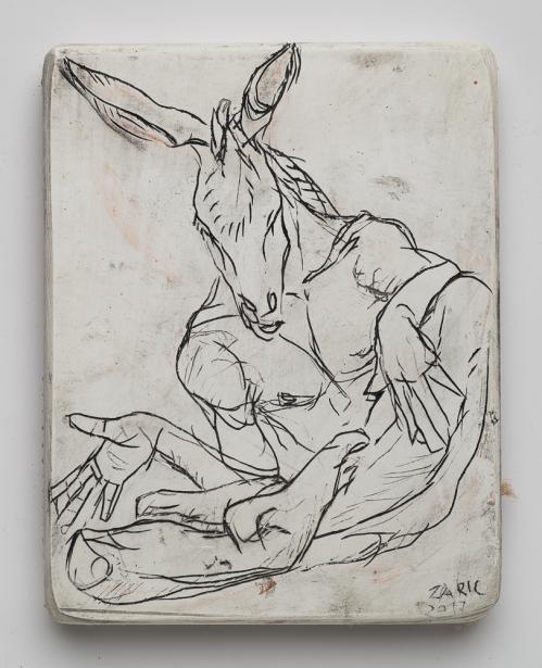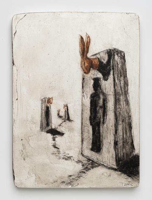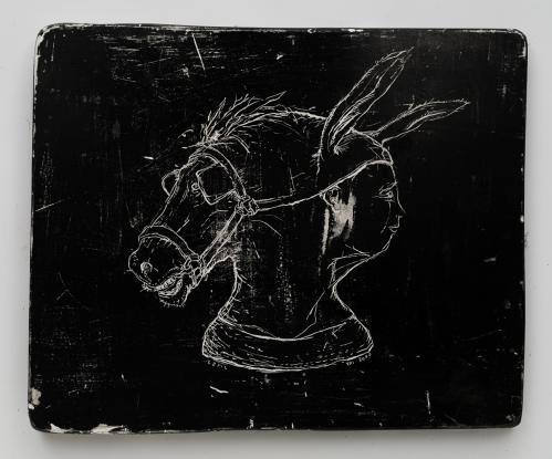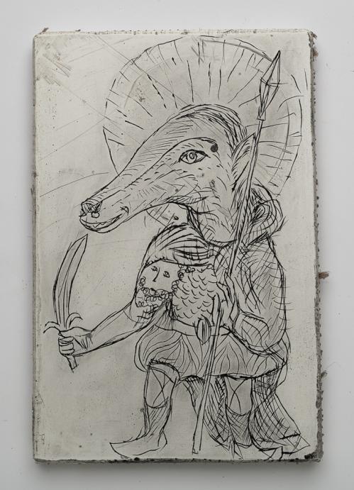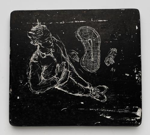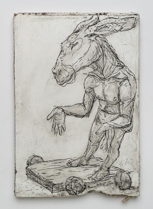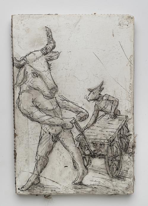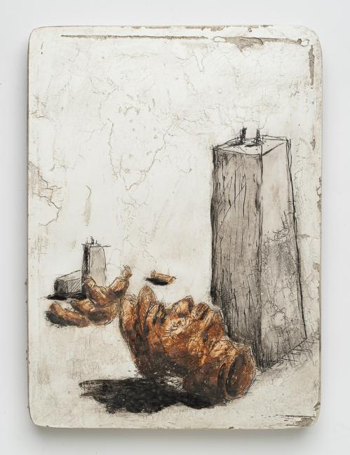 2017, Plâtre gravé, technique mixte , 20 x 22,5 x 1,5 cm