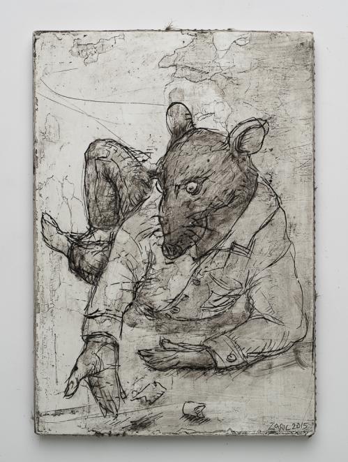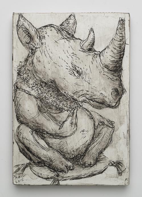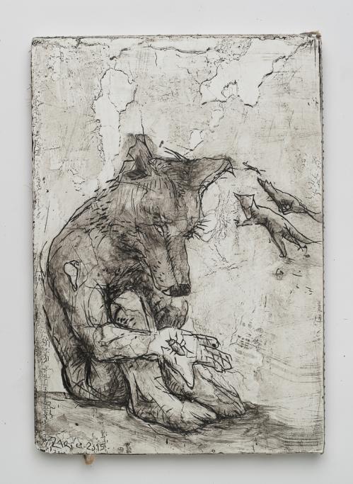 2015, Plâtre gravé, technique mixte , 22 x 15,5 x 1 cm