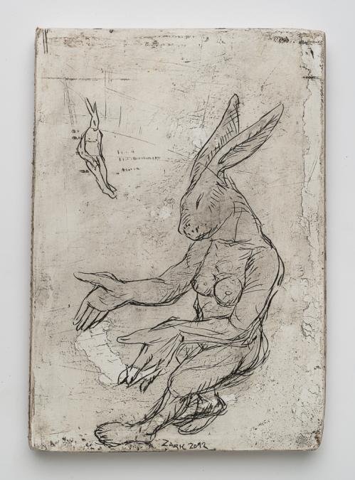 2012, Plâtre gravé, technique mixte , 22,5 x 15 x 1 cm