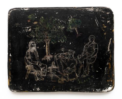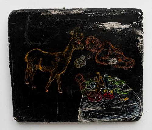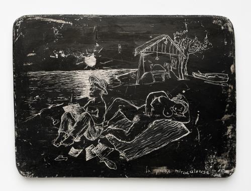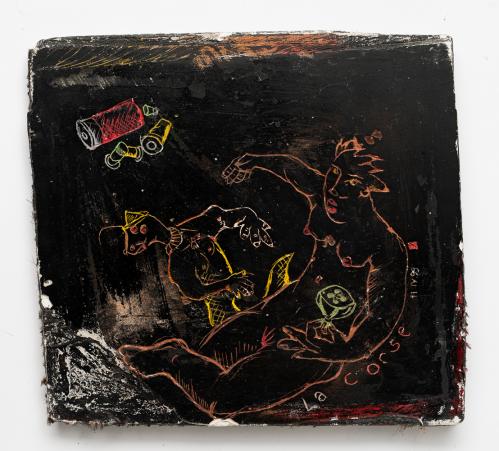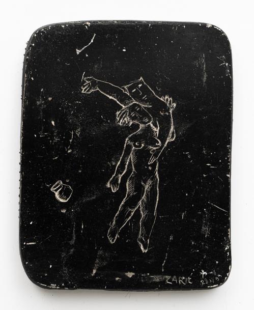 1999, Sgraffito plâtre gravé, Fond noir, 13,5 x 17,5 x 1,5 cm