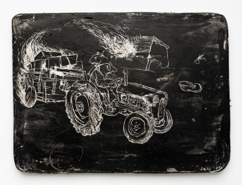 2017, Plâtre gravé, technique mixte , 22 x 30 x 1,5 cm