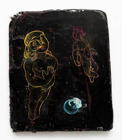 2017, Plâtre gravé, technique mixte , 14,5 x 11,5 x 1,5 cm