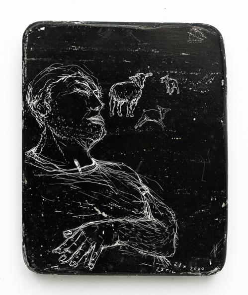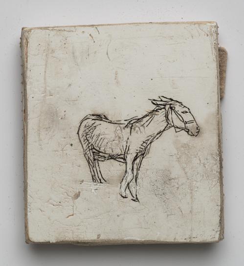 2003, Plâtre gravé, technique mixte , 22 x 15 x 1 cm