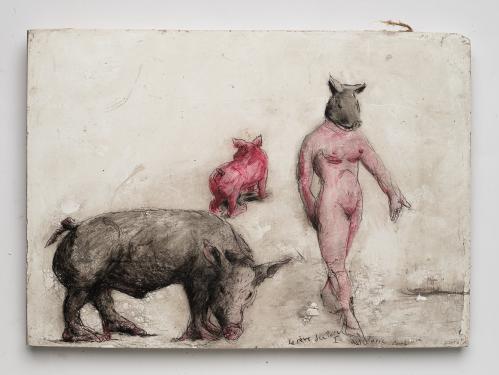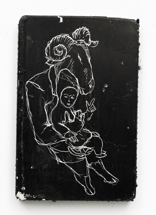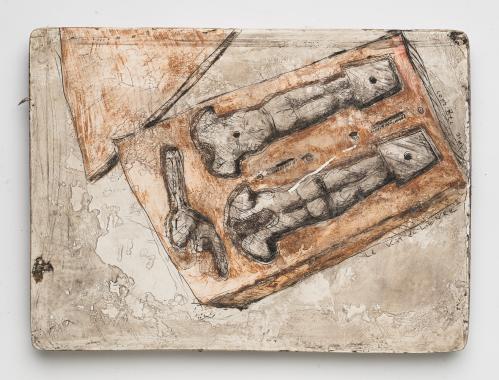 2013, Plâtre gravé, technique mixte , 22 x 15 x 2 cm