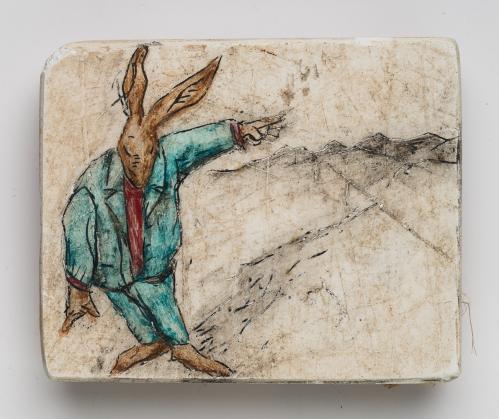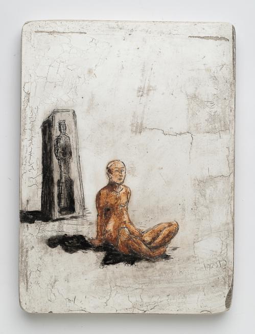 2003, Plâtre gravé, technique mixte , 22,5 x 15,5 x 1,5 cm