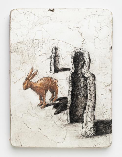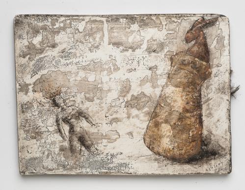 2013, Plâtre gravé, technique mixte , 22 x 15,5 x 1 cm