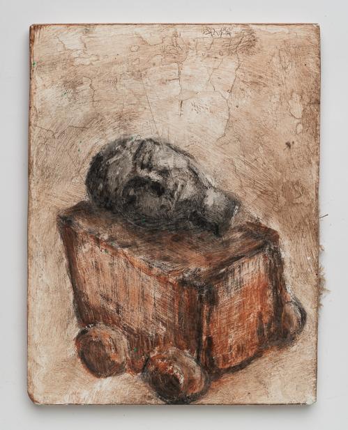 2010, Plâtre gravé, technique mixte , 7,5 x 6,5 x 1,5 cm