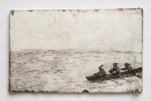 2010, Plâtre gravé, technique mixte , 15,5 x 22 x 0,5 cm