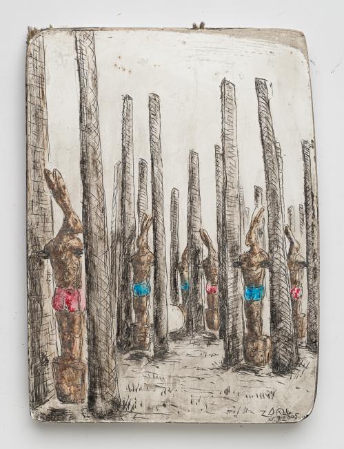 2003, Plâtre gravé, technique mixte , 22 x 29,5 x 1,5 cm