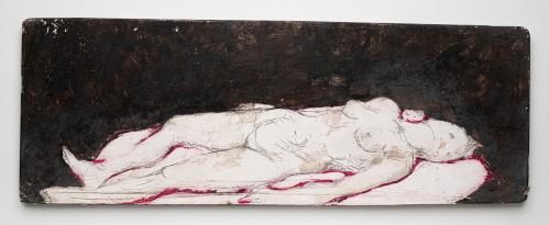 2004, Plâtre gravé, technique mixte , 22 x 58,5 x 1,5 cm