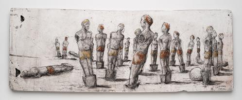 2004, Plâtre gravé, technique mixte , 23 x 65 x 1,5 cm