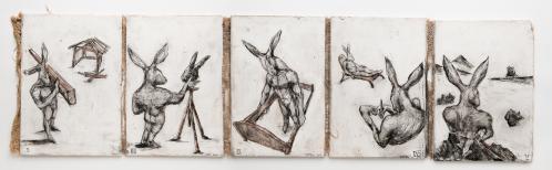 2016, plâtre gravé, technique mixte / 5 platres, 30 x 22 x 1 cm (5x)